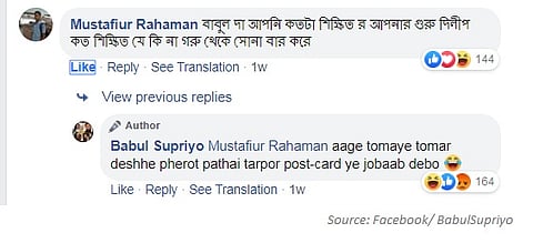 The next day Rahman commented on Supriyo's Facebook post and questioned the educational qualifications of Supriyo and BJP state president Dilip Ghosh.