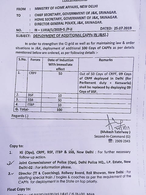 The Union Ministry of Home Affairs has approved deployment of 100 companies of Central Armed Police Force (CAPF) "in order to strengthen the CI (counter-insurgency) grid as well as for maintaining law and order situation" in Jammu and Kashmir.