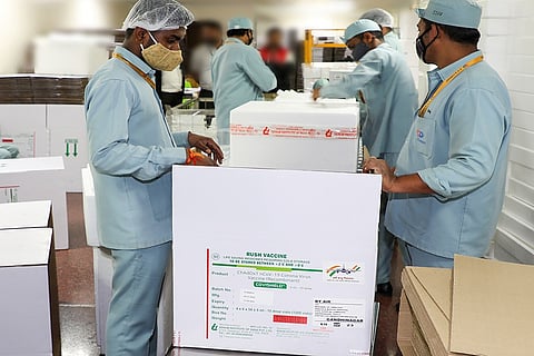 Serum Institute of India staff pack Covid-19 vaccines for dispatch