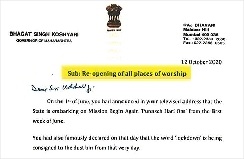 Koshyari’s controversial letter to Uddhav Thackeray.