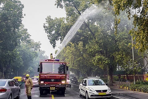 The local authorities were seen using water pipes for sprinkling water using NDMC trucks in the morning.