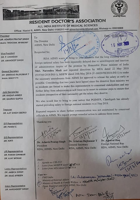 The foreign national resident doctors complain that Indian counterparts in AIIMS earn between Rs 80,000 to Rs 1 lakh per month depending on the year they are in, but they risk their lives and still don’t get a single rupee from the hospital against any expense that incurred while discharging duties.