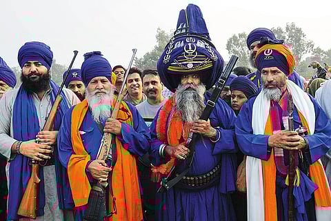 The word Nihang conjures up the image of a Sikh armed with traditional weapons and dressed in a loose blue top almost touching his knees, long (generally white) breeches, and a turban of more than usual length. Among all the diverse communities and distinct sects within the broad religious tradition of Sikhism, the Nihangs stand out. The prevalence of numerous traditions and practices in the Indian religious landscape makes it possible for Nihangs to pass for just another group with a distinct identity. Not every tradition within the Sikh religion culminates in the formation of a distinct community, but the possibility exists. Moreover, when a religious tradition emerges, there is always a likelihood that it borrows from other existing traditions. It is in this context that the existence of Nihangs should be understood.