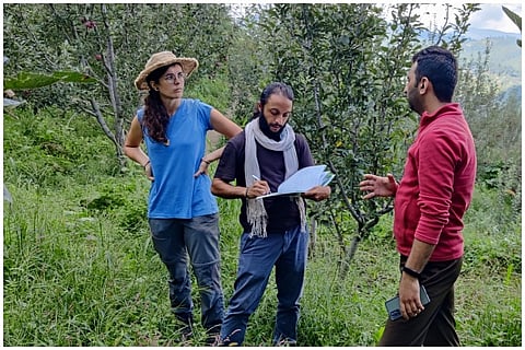 Carole Durand, 28, from Averon, France, is in Himachal Pradesh with her friend, Shahzad Parbhoo, 36, to get firsthand knowledge of the low-cost climate-resilient natural farming techniques being promoted by the state government.
