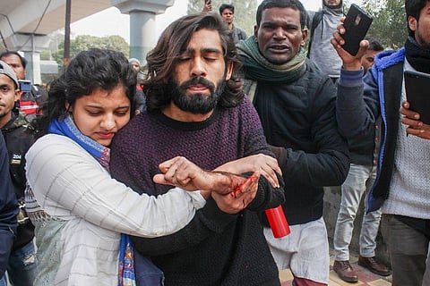 Thousands of people and police personnel faced off against each other near the Jamia Millia Islamia University on Thursday after a man fired a pistol at a group of anti-CAA protesters, injuring a student before walking away while waving the firearm over his head shouting "Yeh lo Aazadi".