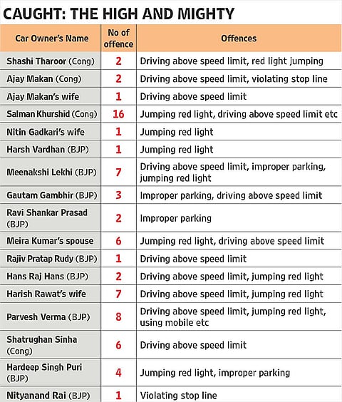 So you are despairing over the notices sent by the Delhi traffic police: red light jumping, improper parking, driving above the speed limit…And wondering where did you commit these offences? But worry not, you are in august company. Among the thousands of people slapped traffic violation notices—‘challaned’ as you like to say in typically desi terminology—in Delhi in recent months are Union ministers and leaders from across the political spectrum. And one of the names is…yes, you read it right, Kanchan Gadkari, wife of Union transport minister Nitin Gadkari, who was pivotal in amending traffic laws to make violations a costly affair. Congress leader Salman Khurshid has as many as 15 pending notices against one of the several vehicles registered in his name.