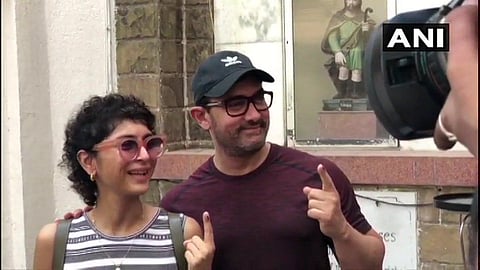 10:24 am: Actor Aamir Khan and his wife Kiran Rao after casting their votes at polling booth in St. Anne's High School in Bandra.