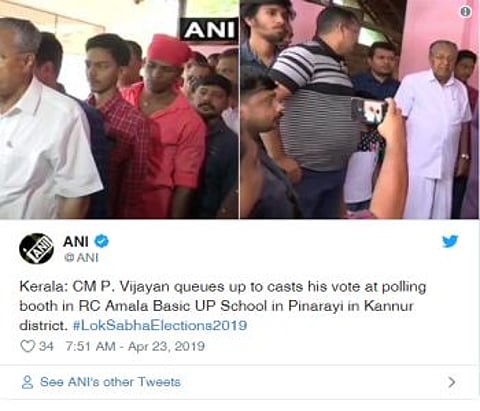 8:04 am: Kerala CM Pinarayi Vijayan queues up to casts his vote.