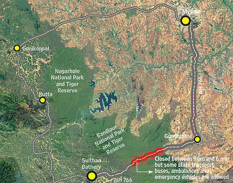 A ban on night-time traffic has been in force for ten years in Bandipur National Park through whose critical tiger habitat two national highways pass—it has been contested, of course, all these years through litigation. Now, however, bordering Wayanad has risen in protest. Demonstrations and indefinite fasts have marked the past couple of weeks in the hilly Kerala district into which Rahul Gandhi, as its MP, has waded in.