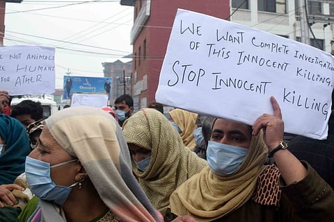 Families of the youth killed on the outskirts of Srinagar in an alleged “encounter” by the army today sought bodies of their children and probe into their killings. The families have been saying the youth have been killed in a fake encounter by the army.