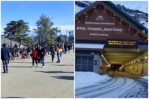 (Tourists crowd Ridge (left), Rohtang Tunnel also got a high rush of visitors)