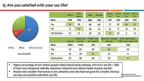 The Outlook Group-Karvy Insights Urban Health Survey was conducted by Karvy Insights Limited. A total of 1,648 interviews were conducted spread across nine cities: Delhi, Lucknow, Mumbai, Indore, Calcutta, Patna, Chennai, Bangalore and Vijayawada.
