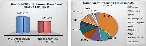 About 72.46 lakh farmers have benefitted from the ongoing Kharif Marketing Season (KMS) procurement operations with Minimum Support Price (MSP) value of Rs. 1,02,161.76 Crore, according to a statement from the Ministry of Agriculture & Farmers Welfare on Tuesday (January 12).