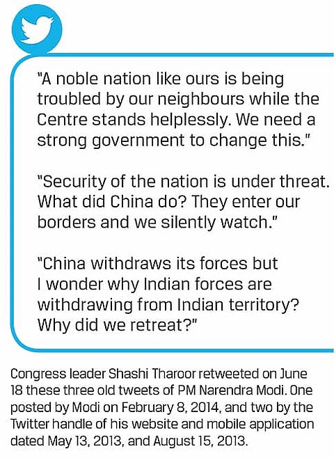 The political class, of course, is embroiled in its own combat games. With the Modi regime facing one of its biggest security and diplomatic challenges, the Congress has sprung into action—keeping up a fusillade of questions. While trying to walk a tightrope so as not to be seen as opportunist, the temptation to taunt the BJP on its pet theme of aggressive ‘nationalism’ has been hard to resist. Congress leader Rahul Gandhi chose the open platform of Twitter to point-blank ask the government whether it has ceded any land to China. Even former PM Manmohan Singh weighed in, warning Modi against any “historic betrayal of people’s faith”. Referring to Modi’s claim of there being “no intrusion”, Manmohan said “disinformation is no substitute for diplomacy or decisive leadership”. Modi had told the all-party meeting on June 19 that “no Chinese troop had intruded into the Indian territory”. His office later claimed a “mischievous interpretation” of the PM’s statement.