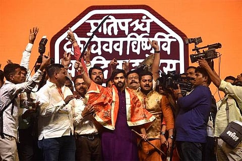 During the inaugural session of the MNS plenary meet, he also paid respects to Hindutva ideologue V D Savarkar besides Chhatrapati Shivaji Maharaj, B R Ambedkar and his grandfather Prabhodhankar Thackeray.