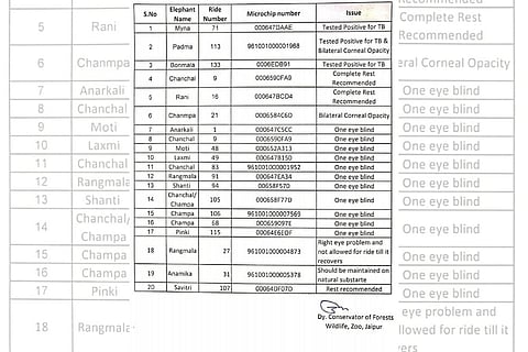 The Rajasthan Forest Department has directed the Department of Archaeology and Museums to stop deploying 20 medically unfit elephants for tourist rides at Amber Fort. As per the order, of the 20 elephants, three tested positive for tuberculosis (TB) while a few others suffer from impaired vision, chronic foot problems and malnourishment.