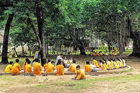 Young students in canary/white uniforms sit in a circle under a leafy tree, attention rapt as their teacher tells them a story—the inexplicable tale of life and livelihood dissected in a class that hasn’t changed much in its form and substance in a century short of three years. Wish he could weave into the tale the trouble that has returned to haunt their institution: Rabindranath Tagore’s Visva Bharati at Santiniketan. It is hard-pressed for funds, nearly 78 years since Parliament passed a law that demands the Union government take full financial responsibility of the university.
