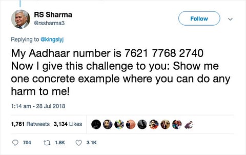 All hell broke loose when the TRAI chief decided to challenge people by posting his Aadhaar number