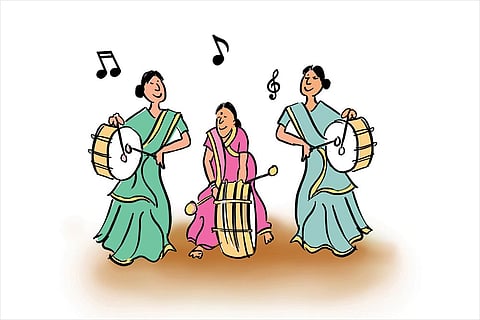 They’ve performed in front of Amitabh Bachchan in Kaun Banega Crorepati. They “fly in aeroplanes, visit faraway cities and live in good hotels.” And it’s a far cry from where they started. The Nari Gunjan Sangam Mahila Band, a band of ten Dalit women from landless families in Bihar, made a name as drummers at weddings and festivals. The group, formed two-and-a-half years ago with the aid of social activist Sudha Varghese, earns around Rs 2.2 lakh a year—vital income that has made members’ lives easier and helped them support their families, and build houses; objecting husbands have been silenced through the handing over of the moolah.