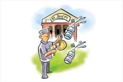 When the bells toll at St Joseph’s upper primary school in Thrissur district, it’s not just to mark the end of classes. At 11:45 am and 2:45 pm, ‘water bells’ ring and children take out their bottles or line up at the water cooler to swig the vital fluid. And no, they don’t have a choice—hydration is compulsory. In case you’re wondering how this injunction came about, the principal explains, “We have noticed girls don’t drink enough water to avoid going to the toilet. Students have reported health problems such as urinary infections.” Perhaps ‘toilet-cleaning bells’ would have been more useful than forcing water down kids’ throats.