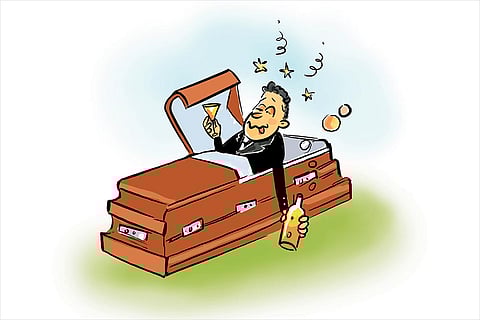 Tipplers of Bihar have had it since prohibition was imposed, but, as they say, thirst is the mother of invention. First they used watermelons, vegetables and bicycle tubes to smuggle alcohol, then ambulances and premier trains, and now…coffins. On November 16, police intercepted a truck in Saran which had six caskets wrapped in black cloths. The driver said the cases were empty, but instead of the dead, 502 cartons with over 4,000 litres of alcohol were found. Let’s hope they don’t use corpses next instead of coffins to store their gut-rot!