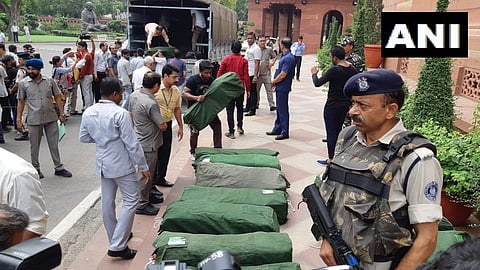 10:30am: Copies of Budget being brought to the Parliament (Photo: ANI)