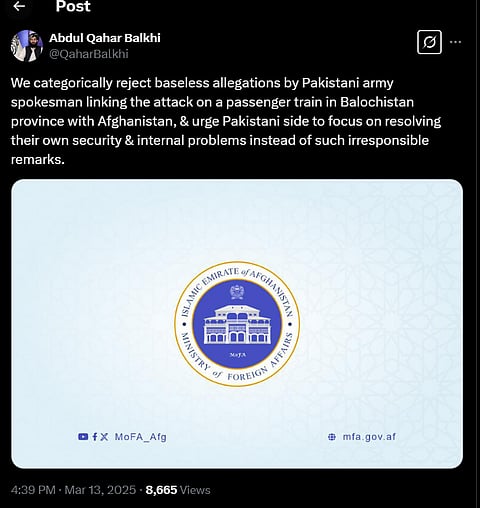 Hours after the Pakistani security forces ended an operation to rescue hostages from a train hijacked by Baloch insurgents, the Taliban on Thursday rejected Pakistan’s claims that Afghanistan-based militants were involved in the hijacking of a Jaffar Express train in Balochistan.