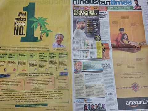 Fighting a battle of perception in the midst of all the headlines surrounding BJP’s attack on the CPI(M)-led Kerala government over political murders, the state government has issued eye-catching full page advertisements in major English dailies titled ‘What Makes Kerala No. 1’.