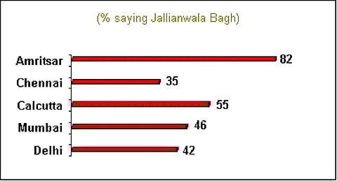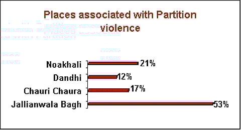 Conducted over six urban centres, the Outlook MODE poll on Partition awareness shows up rather high levels of ignorance among a selected 1,200-strong cross-section from the 18 to 25 age group. Respondents were given eight questions. the most off-the-mark answers came to the question on the places the respondents thought were associated with Partition violence. 52 per cent, for instance, ticked Jallianwala Bagh, 17 per cent Chauri Chaura and 12 per cent Dandi. The right answer, of course, is Noakhali.