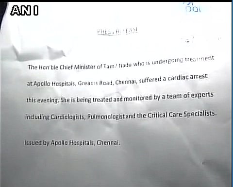 The six time chief minister of Tamil Nadu suffered cardiac arrest and respiratory failure on Sunday evening and was rushed back into the critical care unit of Apollo Hospital, where she has been admitted since September 22.