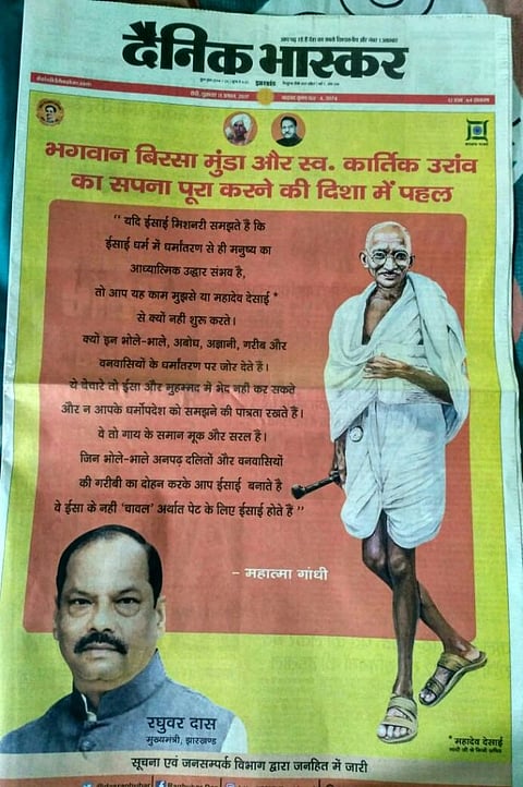 While slamming the state government's advertisement targetting the Christian missionaries against conversion activities in the tribal belt, he pointed out the 'misquotation' of Gandhiji's statement.
