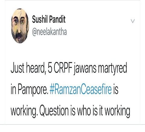 While questioning the Ramzan ceasefire, Pandit tweeted this fake news: