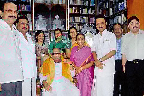 Karunanidhi with his wife, sons Stalin and Azhagiri and other family members