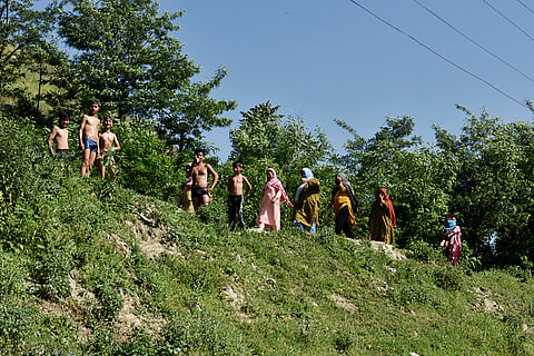 Women walking down towards the polling booth to cast their vote in Marhama Village,in Bijbehara, Anantnag, South Kashmir.