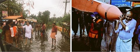 A picture of Kerala Water Minister and leader of the opposition parties helping the flood victims was doing the rounds in the social media.