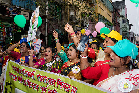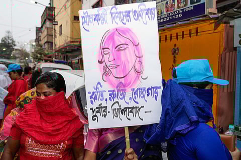 Sex workers and activists carry posters during a foot march marking the International Sex Workers' Rights Day, in Kolkata.
