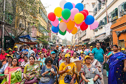 Sex workers and activists carry balloons and posters during a foot march marking the International Sex Workers' Rights Day, in Kolkata.