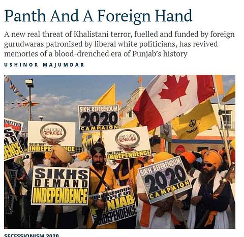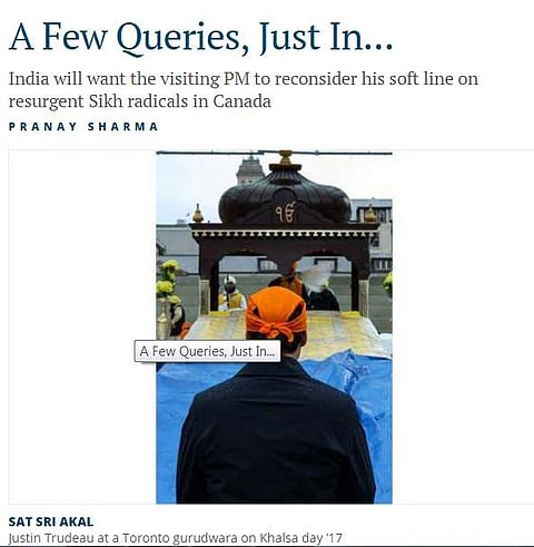 Outlook, in its February 12, 2018 issue, with a cover "Khalistan-II- Made in Canada" had carried seven articles in a package questioning Canadian cabinet's proximity and appeasement policies towards the Sikh radicals, particulalary in the context of 1985 terrorist attack on Air India flight 182, Kanishka, which killed over 300 passengers.