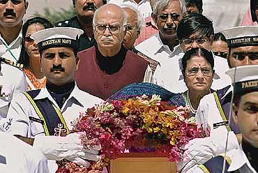 June: In Pakistan, describes Jinnah as secular, provoking outraged reaction from the Sangh parivar. Resigns from the party president post.