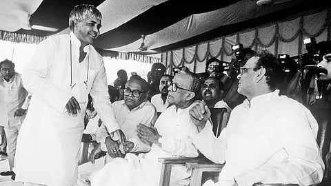 Ahead of the 1977 Lok Sabha election, the repression of Emergency rule had helped a wide range of the Congress’ opponents, from opposite ideological poles, give up their separate identities and form a unified platform to dethrone Prime Minister Indira Gandhi. They gathered around freedom fighter Jayprakash ‘JP’ Narayan, the tallest living politician of the time, who served as the nucleus of the newly-launched Janata Party. He was the face of a united opposition to Gandhi’s authoritarianism.