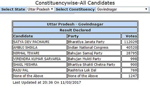 The result of the seat in the recently concluded assembly polls, as per the Election Commission is as follows: