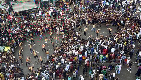 Devotees take part in a Muharram procession at Karad, in Satara district.