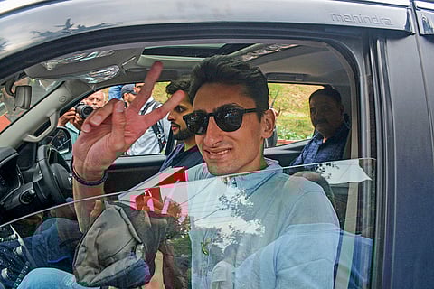 Jammu and Kashmir National Conference Vice President Omar Abdullah leaves for Budgam to get the certificate after he won from the constituency in the Assembly elections, in Srinagar.