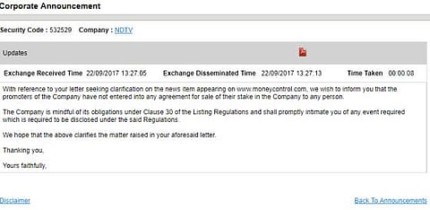 "The Company is mindful of its obligations under Clause 30 of the Listing Regulations and shall promptly intimate you of any event required which is required to be disclosed under the said Regulations," it added.