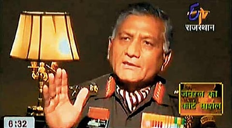 March 17 ETV Rajasthan airs interview of Gen V.K. Singh with Santosh Bharatiya of Chauthi Duniya in which he claims he was offered a Rs 14 crore bribe by a senior retired army officer to clear a consignment of substandard vehicles