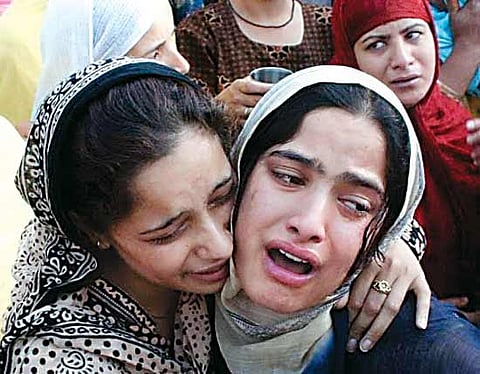 Inconsolable Women mourning a local boy killed in Kashmir. (Photograph by AFP, From Outlook, October 17, 2011)