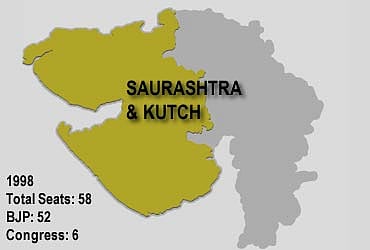 Saurashtra has never voted on communal lines. It votes on issues and caste. The common man is disillusioned, the women fed up. They have to travel long distances for water," says Narandas Thakkar in Rajkot. "We are not interested in Godhra and Mian Musharraf. It is high time the BJP did something for us. When Narendra Modi campaigned in Rajkot—he ran away from there finally—he had said water would be available in plenty. But we hardly get water for 20 minutes, and that too is uncertain," says Ninaben Dave.