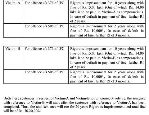 The court awarded 10 years of sentence each for the rape of two women by making it clear that both the punishment will run consequently against the chief of Dera Sacha Sauda.
