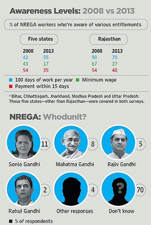 The helplessness of rural workers is a big hurdle for the National Rural Employment Guarantee Act (NREGA). The whole idea of the scheme is to give people entitlements that they can demand as a matter of right—work on demand, minimum wages, payment within 15 days, and so on. To this day, however, NREGA workers know little about these entitlements. Nor is people’s awareness rising over time, judging from a comparison of the PEEP survey with an earlier study of NREGA workers. Even in Rajasthan, NREGA’s stronghold, people seem to know less today than they did five years ago.