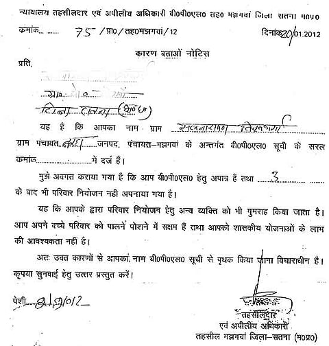 But they are being left with no choice. The local administration is using both threat (of withdrawing BPL privileges) and incentive (providing Antyodaya cards, ration cards, even houses; Rs 600 and a six-yard saree for women) to lure them into sterilisation. It’s an elaborately tiered system that flows from the chief minister, down to the principal secretary, chief secretary, collector, the sdms, patwaris to the direct point of contact—the anganwadi worker (see box). The anganwadi worker, a woman, is instructed to bring in 10 people for sterilisation. For her effort, she’s paid Rs 600 for every woman she can get to undergo sterilisation and Rs 1,100 for men. However, should she fail to fulfil her requirement, there’s a threat hanging over her head too. As we found out after a conversation with our cab driver, Sunil Soni. His mot-her, an anganwadi worker in Satna, stands to lose her job if she does not follow the quota system. “So, I help her out occasionally,” he confesses. Only to add hastily, “But I don’t coerce them.” Lalit, a daily-wager in the Majganwa block in Satna, offered to go for a vasectomy to save a part of his anganwadi worker wife Asha’s Rs 1,250 salary. The Kol couple has three children; Asha got herself sterilised last year. “This year, it was a choice of seeing the breadwinner face a salary cut of 15 days as per the collector’s orders, or getting myself sterilised.” Needless to say, he opted for the latter.